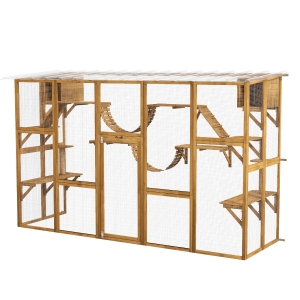 PawHut 94.5" Extra Large Metal Outdoor Catio with Waterproof Cover, 2 Resting Boxes, 7 Jumping Platforms, for Multiple Cats
