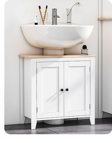 Adding a bathroom vanity cabinet is a handy way to keep cleaning supplies, towels and other necessities organized but out of the way. Our affordable water-resistant designs helps you keep your stored accessories high and dry. Bathroom Vanities >Don't Waste an Inch