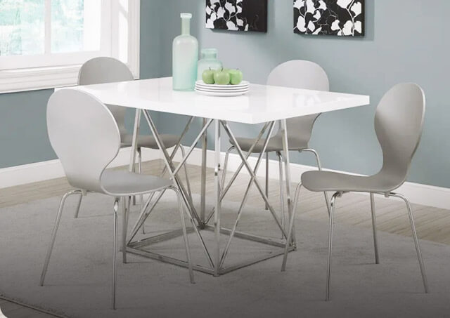 Dining chairs help set the tone for your dining room.French accent chairs are somewhat more elegant, while Scandinavian-style chairs are more minimalist. When shopping for your best dining room deals, make sure to check out our most popular styles and types of chairs: retro, mid-century, minimalist, industrial, rustic - we have them all, and at the cheapest prices on quality furniture around! Dining Chairs >Stylish and Practical Tables
