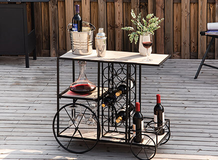 If you are a wine lover, a wine rack will add some style and elegance to your dining room. If you like simplicity, you can opt for an iron one. We also have mobile carts can be used to carry and serve wine and other spirits at your parties. To organize your table- and glass-ware at the same time, you can choose one of our wine-rack and pantry hybrids. To keep delicate vintages at the best temperature, we also have refrigerated wine racks.