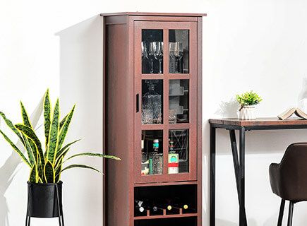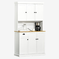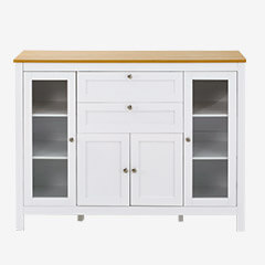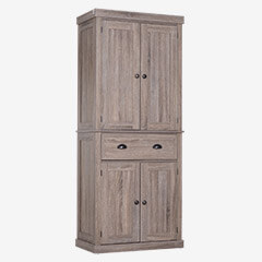 Sideboards and kitchen pantries are very convenient for providing affordable storage options. With enclosed cabinets and open shelving space, sideboards add storage space for cutlery, dry goods, crockery or other kitchen accessories. The kitchen pantry adds more usable storage capacity to any kitchen or dining area. In addition to traditional design, a microwave pantry with open countertop space makes more room for your kitchen appliances. A notch for power cables in the back of the microwave pantry helps avoid wire clutter as well.