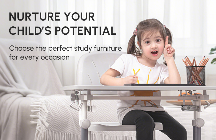 This height-adjustable study desk & chair set with a built-in USB light is perfect for children aged 6-12. It grows with your child, providing ergonomic support and ample lighting for both playtime and study time.