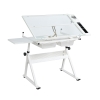 Adjustable Tempered Glass Drafting Table with 2 Metal Drawers, Chair, Powder-Coated Steel Frame Desk for Kids, 40" L x 23.5" W x 27.5" H, White