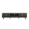 Contemporary TV Stand with Adjustable Shelves for TVs Up to 78", Media Console with Gold Handles and Fluted Glass Doors, Black