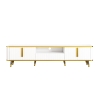 Luxury Minimalism TV Stand with Open Storage Shelf for TVs Up to 85", Entertainment Center with Cabinets and Drawers, White+Gold