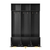 Modern Hall Tree with Bench, High Gloss Fluted Doors, 6 Gold Hooks, and Storage Cubbies, 49.5" L x 15.5" W x 75.5" H, Black+Gold