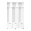 Modern Hall Tree with Storage Cabinet and 2 Large Drawers, Wide Mudroom Bench with 5 Coat Hooks, 59" L x 16" W x 80.5" H, White