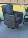 Very spacious seating. The chairs swivel & rock very smoothly. Would have liked if the cushions were a bit thicker so that when you sit you don’t feel the bottom wicker of the chair
