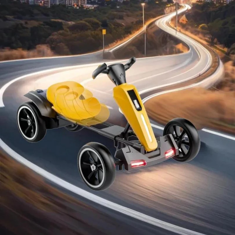12V Electric Pedal Go-Kart for Kids with Adjustable High-Back Seat, Ride-On Truck with Music/Flashing Lights, 38'' L x 22.5'' W x 19.5'' H, Yellow