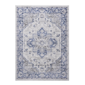 5x7 Traditional Indoor Outdoor Stain Resistant Area Rug with Easy Maintenance, Kid and Pet-Friendly Carpet, 90" L x 63" W x 0.3" H, White+Gray