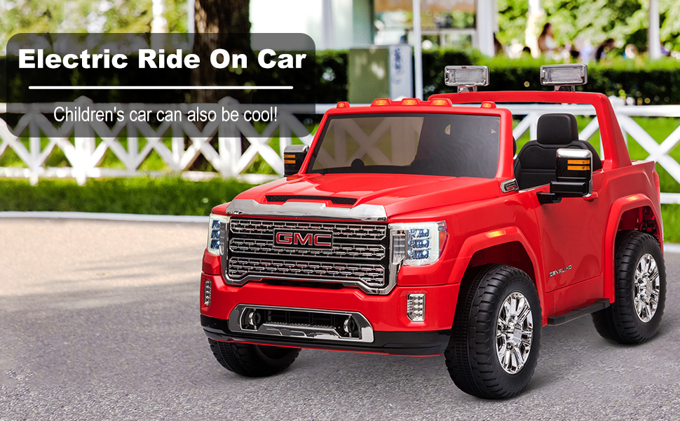 Aosom 12V GMC Sierra HD Battery Kids Ride On Car with Remote Control, Bright Headlights, & Working Suspension, Red