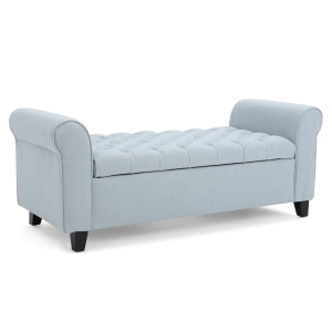 Contemporary Storage Ottoman Bench with Button Tufted Diamond Stitch, Rolled Arms, and Pressure Hinges, 50" L x 19.5" W x 20.5" H, Wheat