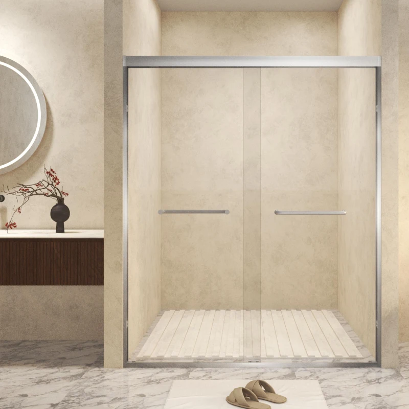 Double Sliding Shower Door with Explosion-Proof Safety Film, Durable Aluminum Panel for Bathroom, 54" L x 0.5" W x 72" H, Brushed Nickel