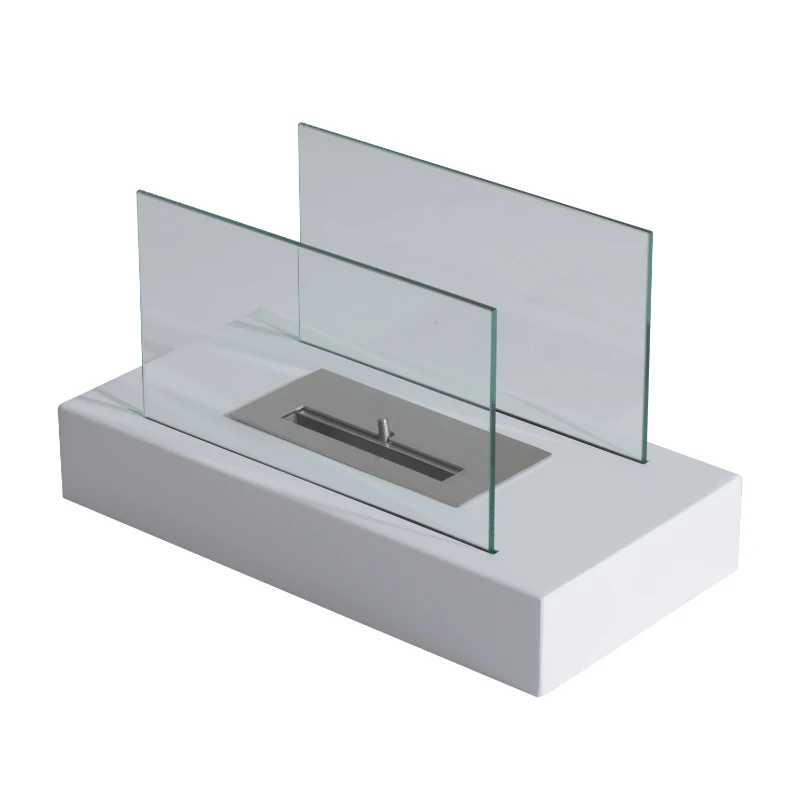 HomCom 14" Modern Free Standing Bio Ethanol Indoor Tabletop Fireplace – White