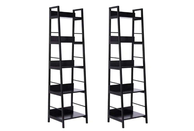 HomCom 2 Pack 5-Shelf Modern Ladder Bookcase (Black)