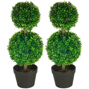 HOMCOM 2 Pack Artificial Tree Boxwood Topiary with Fruits, 20.75", White