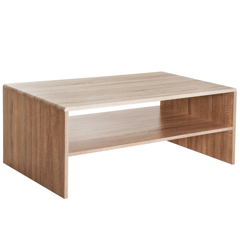 HOMCOM 2 Tier Coffee Table Rustic Living Room Table Indoor Rectangle Wood Coffee Table - Oak