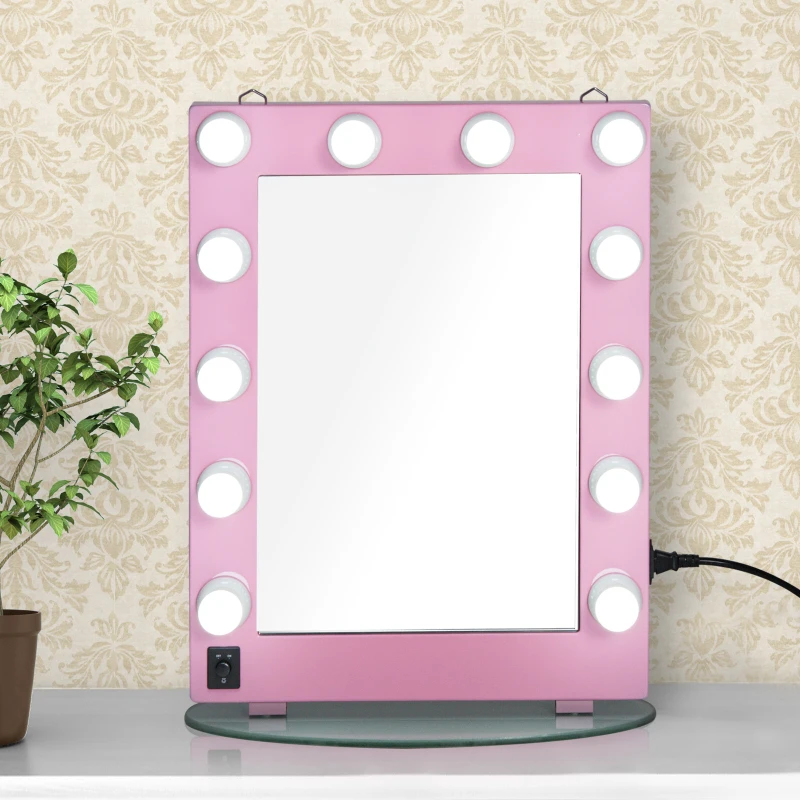 HOMCOM 20" x 26" Aluminum Alloy 26” Dimmable Illuminated Hollywood Style Vanity Mirror Mounted Home with 12 LED Bulbs - Pink