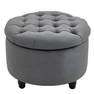 HOMCOM Ottoman with Storage for Living Room, 25" Storage Ottoman with Removable Lid, Button-Tufted Fabric Bench for Footrest and Seat with Wood Legs, Gray