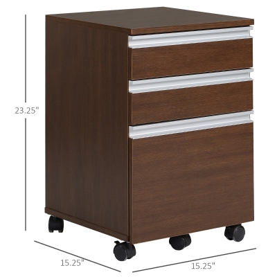 HOMCOM 23.25" 3-Drawer Office Storage Cabinet with Wheels, Brown