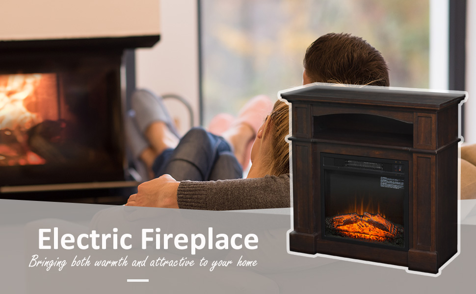 HOMCOM 31.75" W x 31" H Electric Fireplace Mantel TV Stand, Media Console Center Cabinet with a Shelf, Dark Coffee