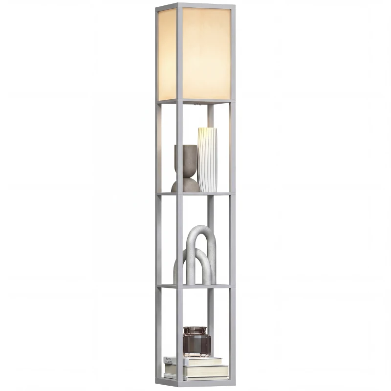 HOMCOM 3-Tier Floor Lamp, Standing Reading Light with Storage Shelves for Living Room, Bedroom, or Dining Room, Grey