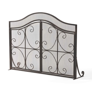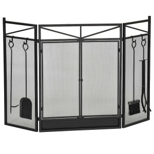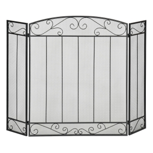 HOMCOM 3-Panel 49.25" W x 31.5" H Metal Mesh Screen Fireplace with Foldable Steel Spark Guard and Magnetic Doors, Black
