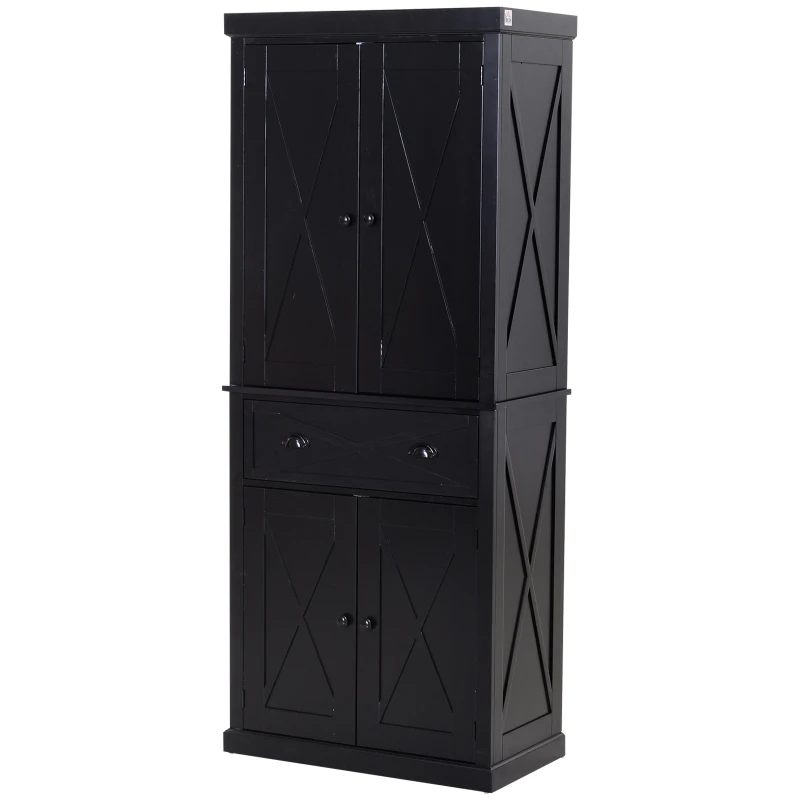 HOMCOM 5ft Tall Wood Kitchen Storage Cabinet with Adjustable Shelves, 2 Wood Pantries, Drawer and Sturdy Design - Black