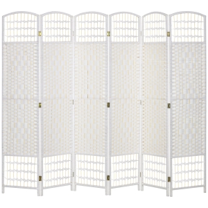 HOMCOM 6 Panel Folding Room Divider Portable Privacy Screen Wave Fiber Room Partition for Home Office White