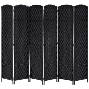 HOMCOM Room Divider, 6 Panel Folding Privacy Screen, 6FT Tall Portable Wicker Weave Partition Wall Divider for Bedroom, Home Office, Black