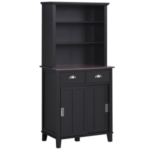 HOMCOM Freestanding 67" Kitchen Buffet with Hutch, Pantry Cabinet with Microwave Stand, Adjustable Shelf, 2 Drawers, Cupboard, Black