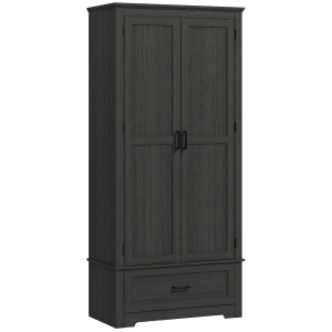 HOMCOM 69" Tall Farmhouse Kitchen Pantry Cabinet with 2 Doors, Drawer and Adjustable Shelves for Dining Room, Black