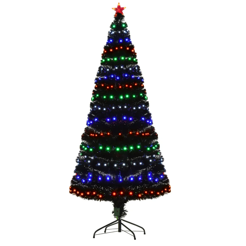HOMCOM 6ft Tall Fir Artificial Christmas Tree with Realistic Branches, 230 Multi-Color Fiber Optic LED Lights and 230 Tips, Black