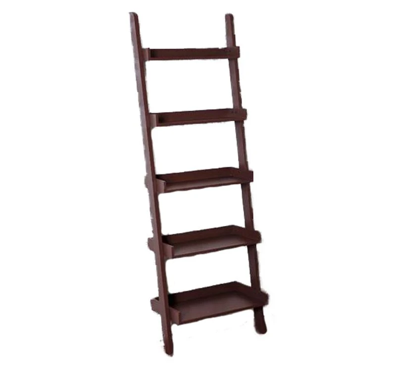 HomCom Brown Wood Leaning Ladder Bookcase Wall Book Shelf Unique 72" High 5-Tier