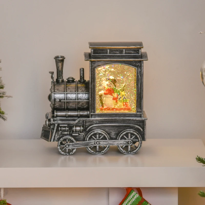 HOMCOM Christmas Snow Globe Lantern Train Shape Music Box with Light Holiday Home Novelty Decorations, Snowman Sledging
