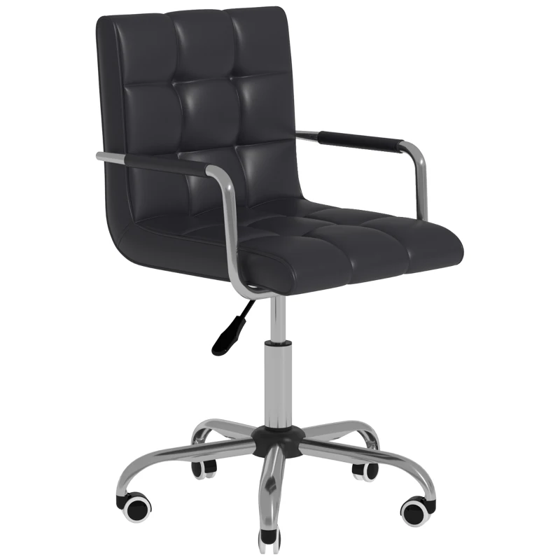 HomCom Ergonomic Swivel Tufted PU Leather Midback Home Office Workstation Chair with Lumbar Support - Black