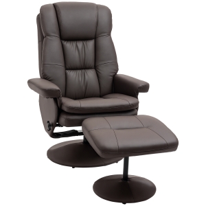 HOMCOM Faux Leather Manual Recliner, Adjustable Swivel Lounge Chair with Footrest, Armrest and Wrapped Wood Base for Living Room, Gray