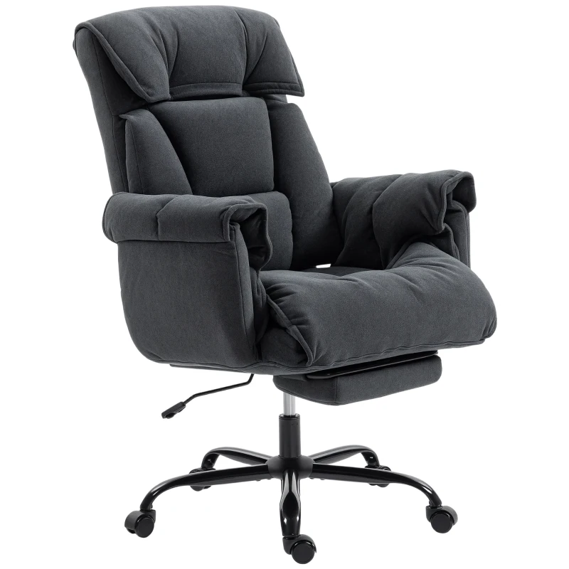 HOMCOM High Back Office Chair, Reclining Desk Chair with Footrest, High Resilience Foam, Rolling Wheels, Dark Gray