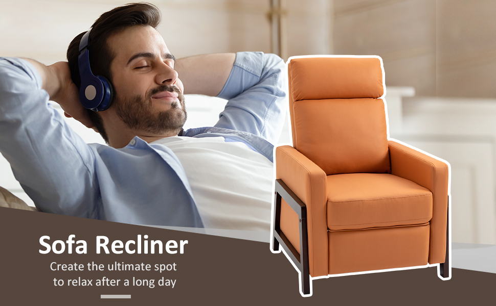 HOMCOM Manual Recliner Sofa Chair with Footrest, Orange