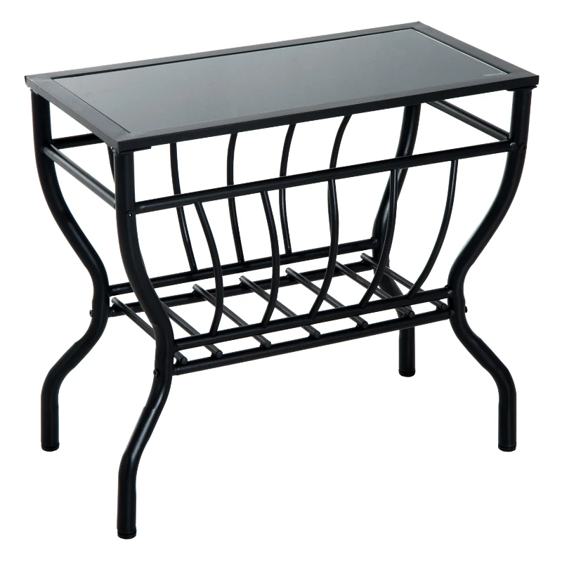 HomCom Metal Magazine Rack End Table w/ Glass Top - Black Glass Top