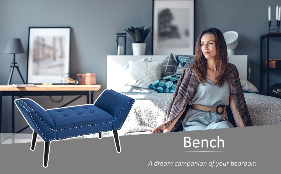 HOMCOM Modern Button Tufted Sitting Bench/Accent Fabric Upholstered Ottoman for Bedroom or Living Room, Blue