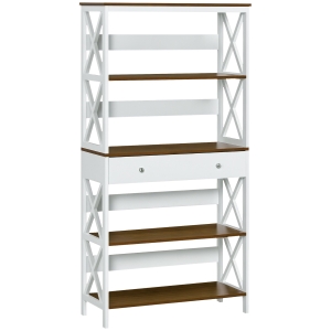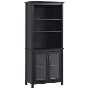 HOMCOM 71" Bookcase Storage Hutch Cabinet with Adjustable Shelves and Glass Doors for Home Office, Kitchen, Living Room, White