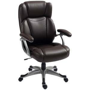 HOMCOM PU Leather Executive Office Chair, Ergonomic and Reclining Office Desk Chair with Footrest, Brown