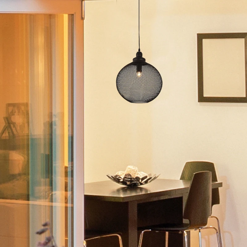 HomCom Retro Industrial Hanging Steel Globe Mesh Light Fixture Pendant - Black