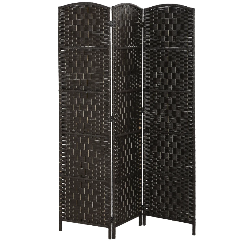 HOMCOM Room Divider, 3 Panel Folding Privacy Screen, 70.9" Tall Portable Weave Partition Wall Divider for Bedroom, Coffee
