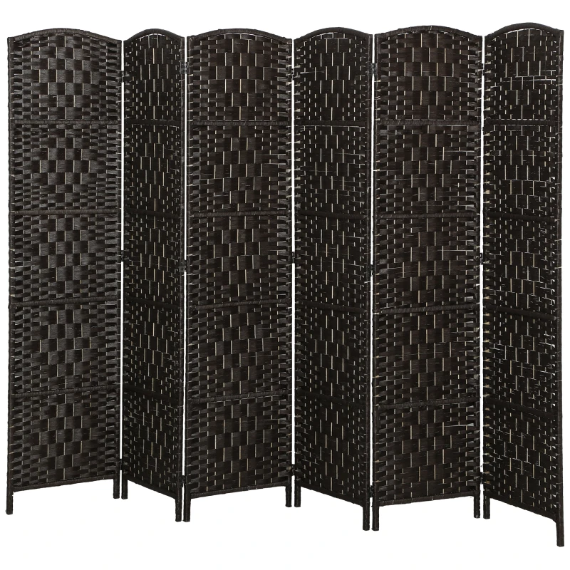 HOMCOM Room Divider, 6 Panel Folding Privacy Screen, 6FT Tall Portable Weave Partition Wall Divider for Bedroom, Coffee