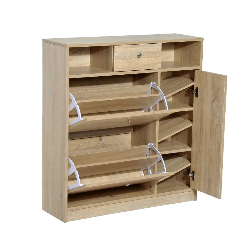 HomCom Wooden Multi Cabinet Flip Down Shoe Shelf Drawer Organizer - White Oak