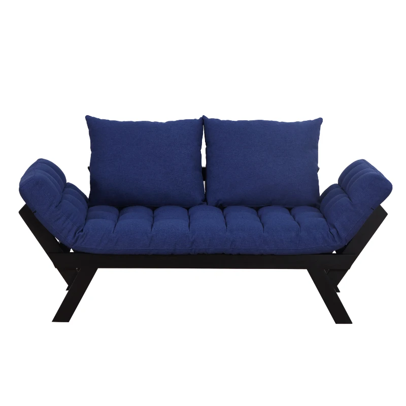 HomCom Single Person Convertible Bed Chaise Lounge Couch Adjustable Padded Lightweight - Blue and Black