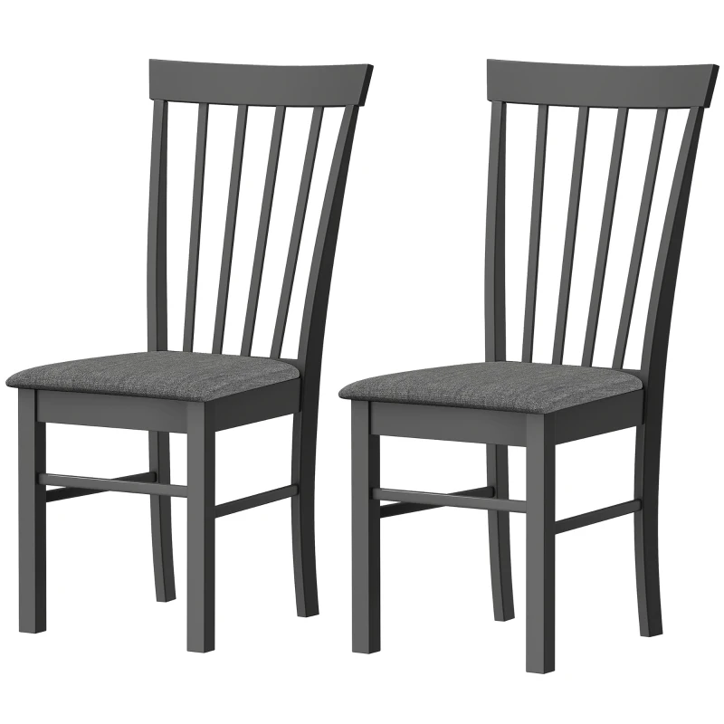 HOMCOM Wooden Dining Chairs Set of 2, Farmhouse Upholstered Kitchen Chairs with Rubber Wood Frame, Black and Gray