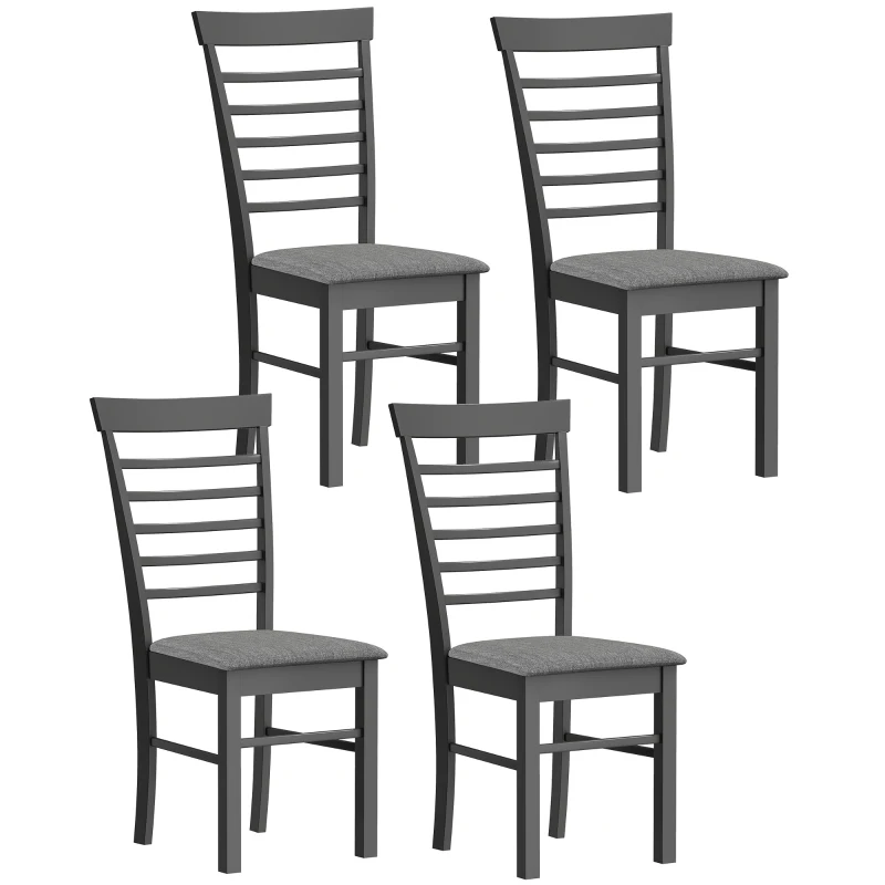HOMCOM Wooden Dining Chairs Set of 4, Farmhouse Upholstered Kitchen Chairs with Rubber Wood Frame, Black and Gray
